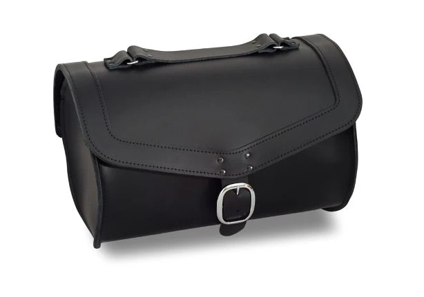 Een 16 liter grote lederen tas uitgevoerd in het zwart.