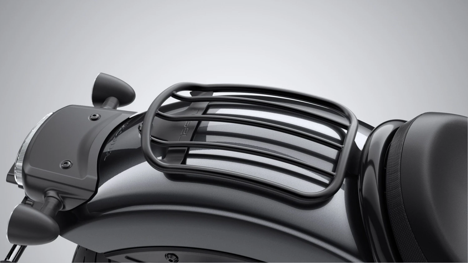 Eenvoudige bagagedrager voor solo-ritten die mooi aansluit op het achterspatbord.