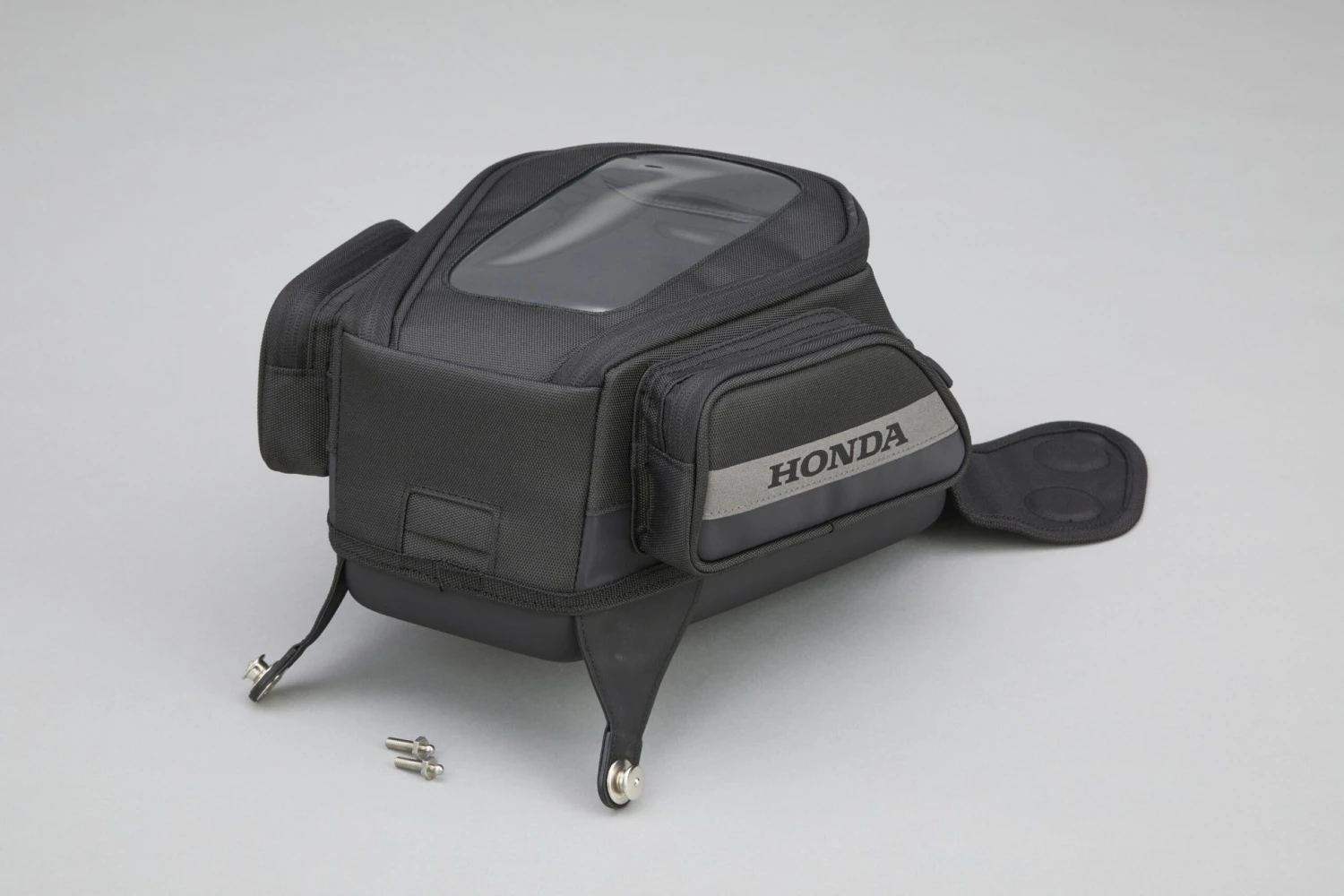 Dankzij de Tenax-sluiting aan de voorkant kan de tanktas snel worden bevestigd of verwijderd, en blijft hij stevig vastzitten wanneer hij is bevestigd. Het Honda originele ontwerp past perfect bij de vorm van de tank en biedt een ruime inhoud van 7 liter zonder dat dit ten koste gaat van het rijgedrag van de Fireblade RRR. Een handig doorzichtig vak aan de bovenkant heeft een gleuf aan de voorkant om eventueel een kabel door te voeren. Aan weerszijden zorgen vakken met ritssluiting en het Honda-logo ervoor dat u uw persoonlijke spullen overzichtelijk kunt opbergen. De tanktas is gemakkelijk te dragen dankzij de handige handgreep en kan worden beschermd tegen regen met de meegeleverde hoes. – Materiaal: polyester – Inhoud: 7L – Laadvermogen: 2kg * Indien geplaatst in de buurt van de magneten van de tanktas, kunnen magnetische kaarten onbruikbaar worden