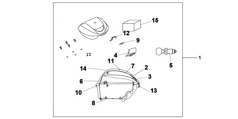 Inhoud 35 liter. Genoeg ruimte voor een integraal helm. Het deksel is in de kleur NH-A16P en heeft een snel sluit systeem.