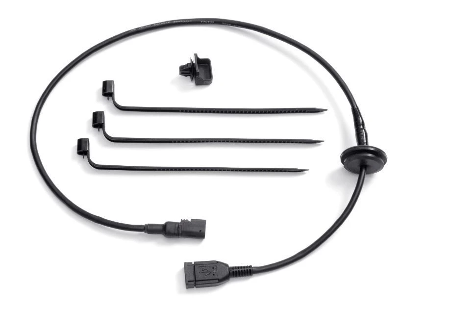 De USB-kabel biedt u een USB 2.0-aansluiting voor je persoonlijke elektronica. Wordt geinstalleerd in de linkerzijkoffer en is daardoor handig en veilig op te bergen.
