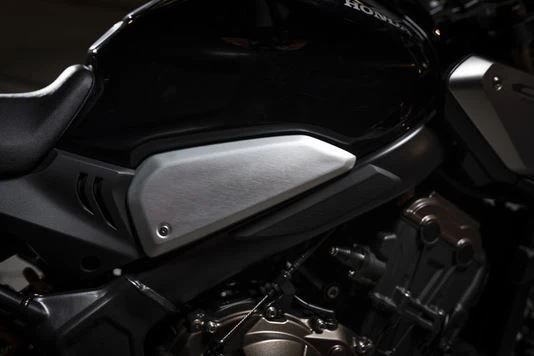 Paar aluminium zijafdekkingspanelen van hoge kwaliteit die bijdragen tot de iconische look van dit model.