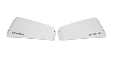 Deksels voor zijkoffers met het Honda logo en passend bij de kleur PEARL GLARE WHITE. ・Materiaal: ABS-hars ・Oppervlakte behandeling: Geschilderd ・Koffers niet inbegrepen
