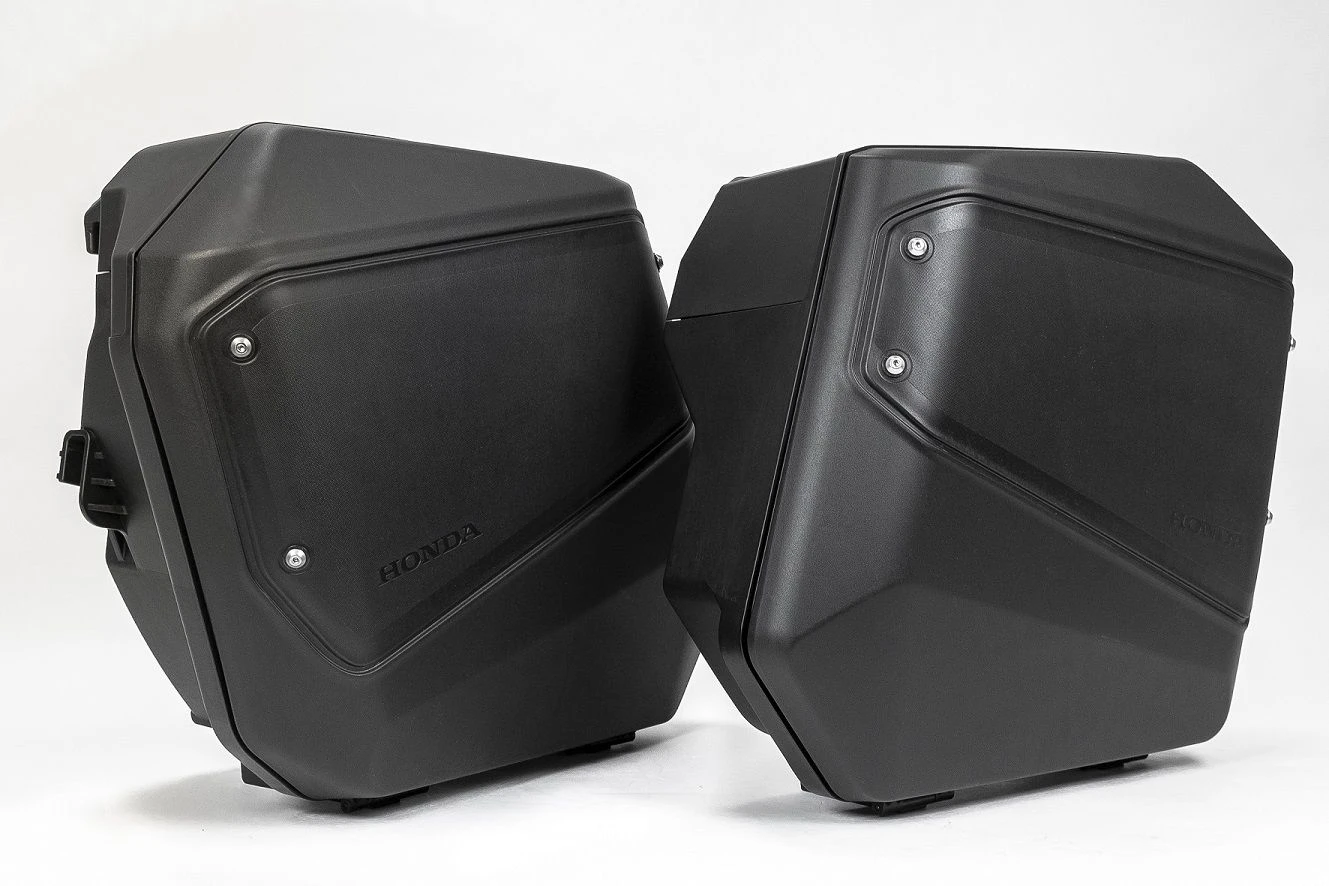 Set van 2 zijkoffers passend bij het TRANSALP body design. Het “Honda one key system” maakt het mogelijk om de zijkoffers te openen en te sluiten met behulp van de sleutel van de motorfiets.